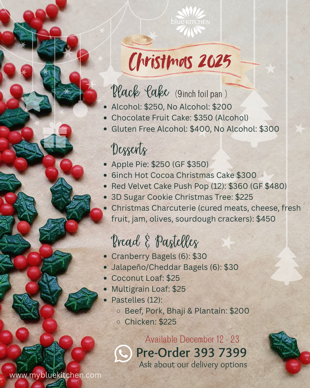 Our Christmas Menu is now available! Pre-orders are encouraged. We can't wait to celebrate the season with you.